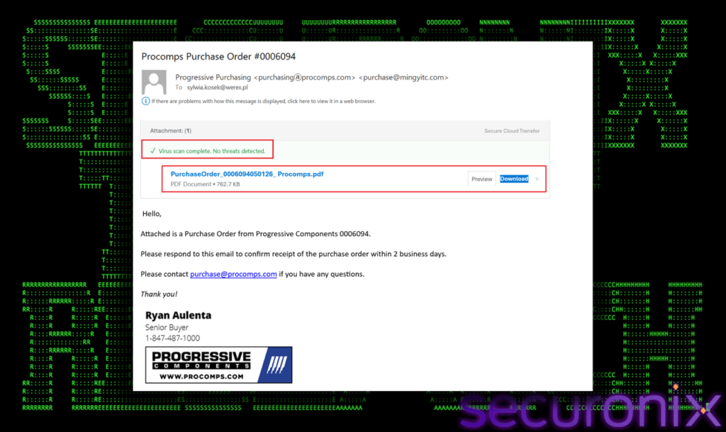 Wektor ataku, fałszywy mail. źródło: securonix.com
